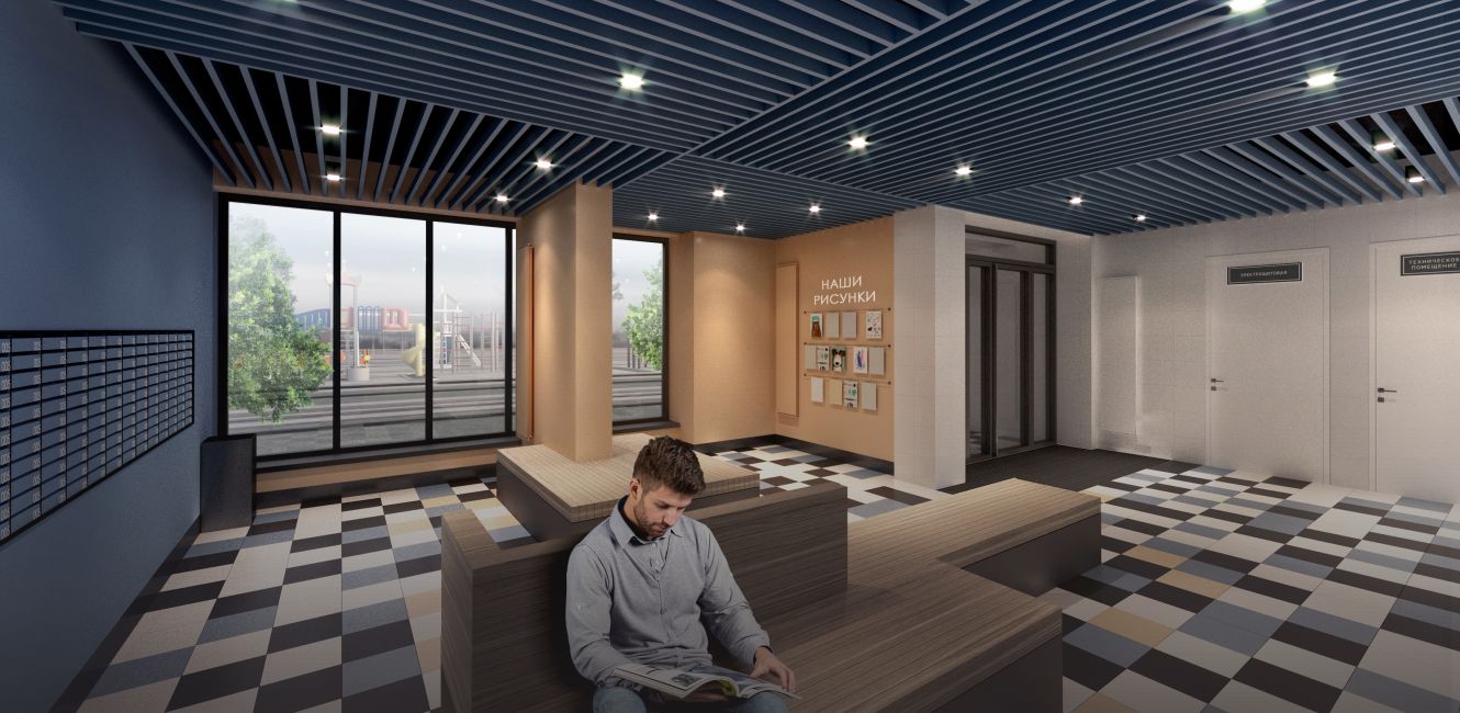 Подъезды имеют два выхода — один во двор, второй на улицу. Просторные светлые холлы в отделаны керамогранитной плиткой, обставлены мебелью. В зоне отдыха можно подождать такси или встретиться с курьером. На каждом этаже от 3 до 13 квартир, в подъездах по 3 скоростных лифта — 2 пассажирских,1 грузовой.