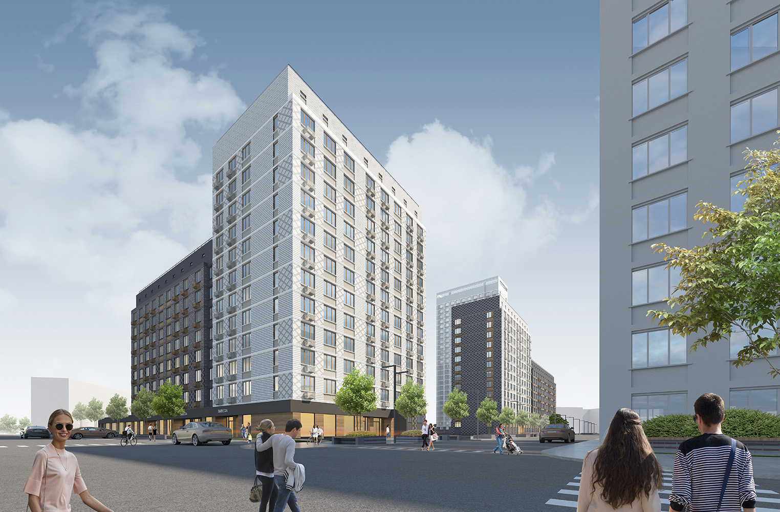 Жилые здания высотой от 9 до 26 этажей формируют комфортную среду обитания. Парковочные зоны вынесены за пределы жилого квартала, двор разделен на несколько зон — детскую, подростковую, спортивную, прогулочную. Оформление игровых и спортивных площадок продумывалось так, чтобы на ней было интересно детям и взрослым всех возрастов. Жилые кварталы связаны между собой зеленым пешеходным бульваром, на котором можно заниматься бегом или просто гулять.