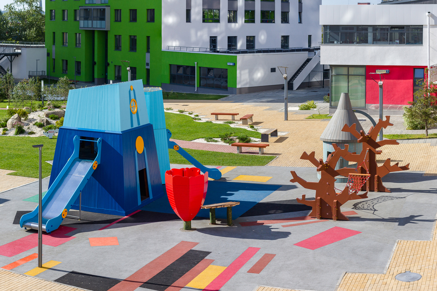 Все пять домов одноподъездные, с выходом во внутренний двор. Дома с оригинальным дизайном не создают замкнутого пространства, что создает ощущение простора. Внутренний двор вмещает в себя детские зоны, место для занятий спортом, альпийскую горку, прогулочные аллеи с удобными скамейками.