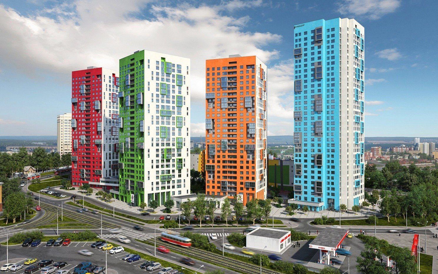 Комплекс из пяти ярких домов расположен в Пионерском микрорайоне. Четыре высотки — красная, желтая, зеленая и оранжевая — уже готовы, ведется строительство синего дома. Срок введения в эксплуатацию — март 2020 года. Надежность застройщика подтверждается 12-летним опытом в строительства в Свердловской области.