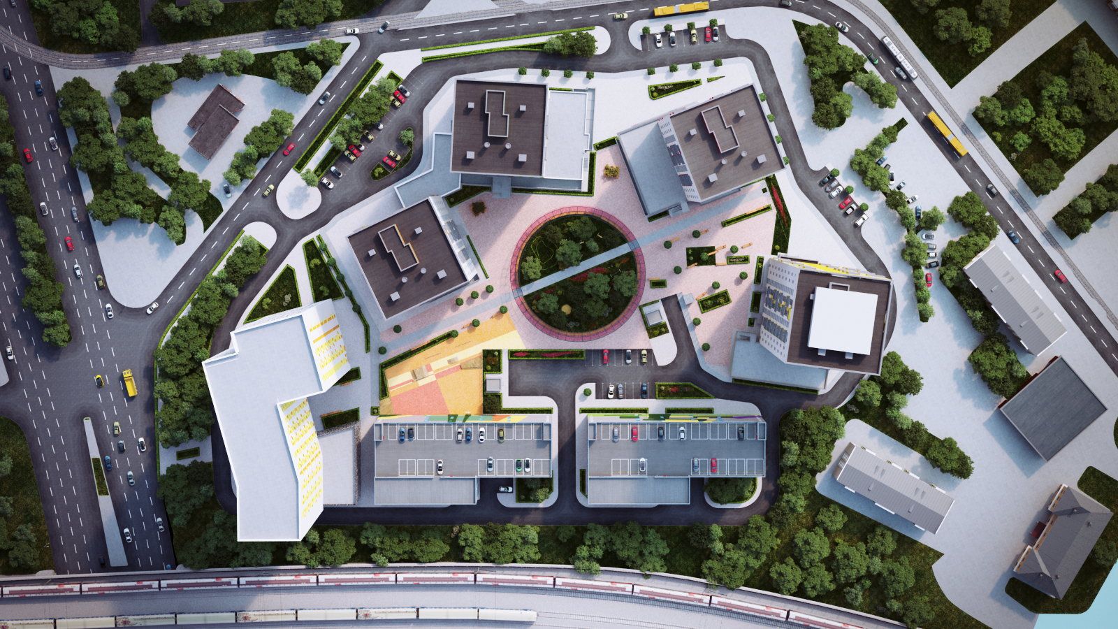 Комплекс состоит из пяти зданий высотой от 27 до 34 этажей и двух наземных паркингов на 1100 машиномест, в каждом из которых панорамные лифты. В паркингах одностороннее движение, широкие проезды, теплая зона ожидания лифта, пол покрыт износостойким покрытием. Во дворе находится большая гостевая парковка. Комплекс огорожен по периметру, установлено видеонаблюдение.